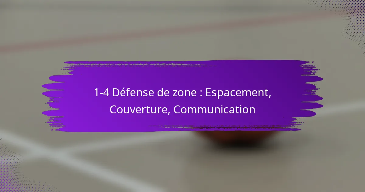 La défense de zone 1-4 est une stratégie de basketball qui positionne un joueur près du panier et quatre joueurs répartis sur le terrain, créant une forte présence défensive dans la raquette tout en couvrant efficacement le périmètre. Un espacement approprié est essentiel pour maintenir la couverture et prévenir la pénétration offensive, permettant aux défenseurs de protéger leurs zones tout en restant adaptables. Une communication efficace entre les joueurs améliore la couverture, permettant à l’équipe de réagir de manière dynamique aux mouvements et stratégies de l’adversaire.