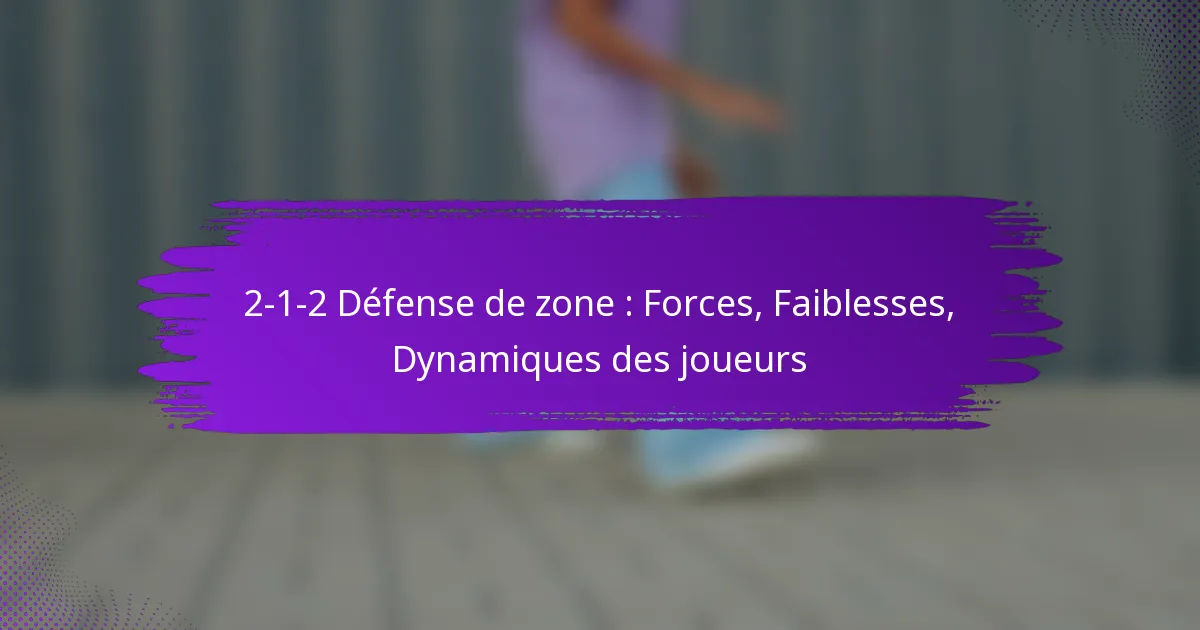 La défense de zone 2-1-2 est une formation stratégique de basketball qui comprend deux joueurs à l’avant, un au milieu et deux à l’arrière, conçue pour protéger la raquette tout en exerçant une pression sur les tireurs extérieurs. Cette configuration perturbe efficacement le flux offensif et contrôle des zones critiques sur le terrain, excelling dans le rebond et la défense intérieure. Cependant, sa structure peut créer des vulnérabilités, notamment contre des tirs extérieurs habiles et des contre-attaques rapides, nécessitant une bonne compréhension de ces faiblesses pour une mise en œuvre réussie.