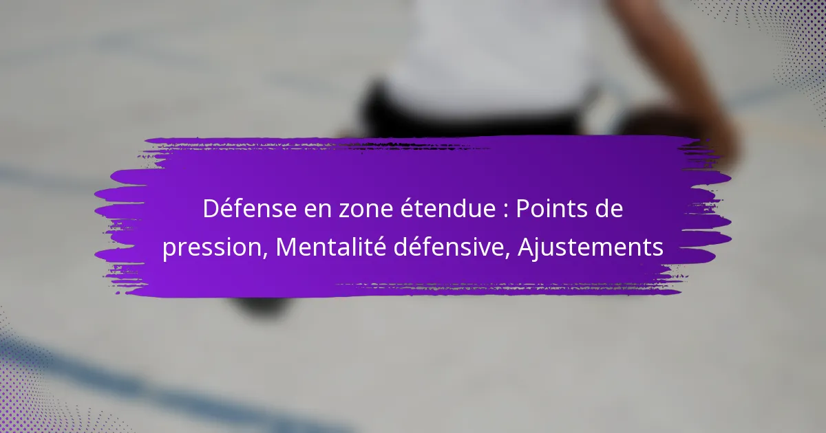 La défense de zone étendue est une approche stratégique du basketball qui met l’accent sur la pression exercée sur le porteur de balle tout en couvrant une plus grande zone du terrain. En ciblant des points de pression spécifiques, cette tactique perturbe le flux offensif, forçant des pertes de balle et créant des occasions de tir difficiles pour les adversaires. Une mise en œuvre réussie nécessite un état d’esprit défensif centré sur la responsabilité collective, l’anticipation et l’adaptabilité, garantissant que les joueurs restent conscients et réactifs aux dynamiques du jeu.
