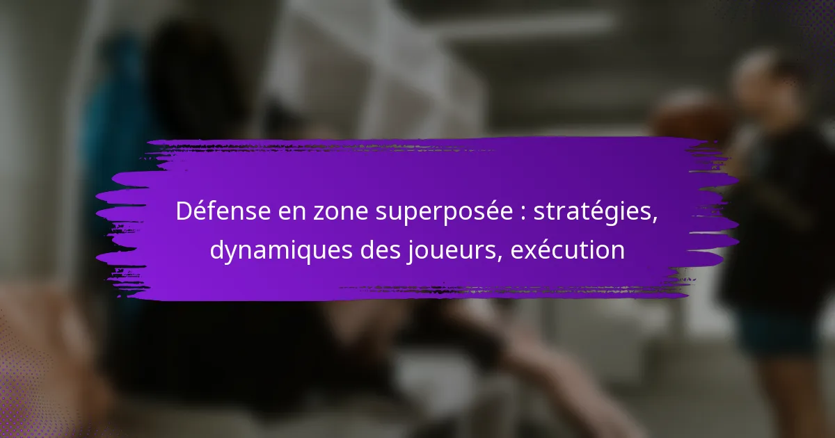 La défense en zone superposée est une approche stratégique qui met l’accent sur le positionnement des joueurs et le travail d’équipe pour couvrir efficacement les menaces offensives. Les stratégies clés incluent l’utilisation de formations efficaces, la réalisation d’ajustements en temps réel en fonction des situations de jeu et l’assurance d’une communication claire entre les joueurs.